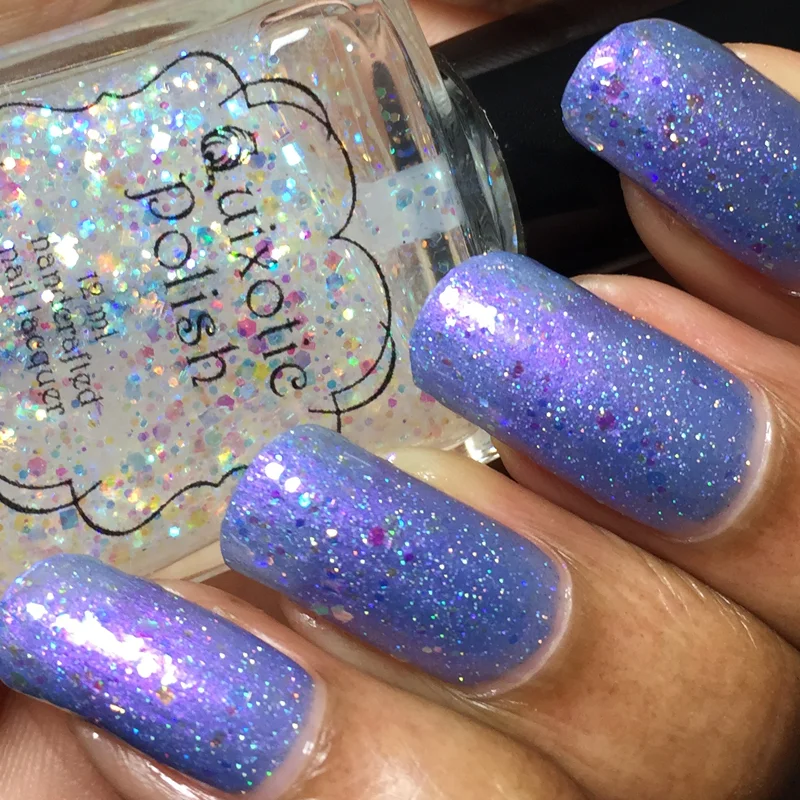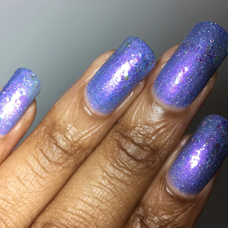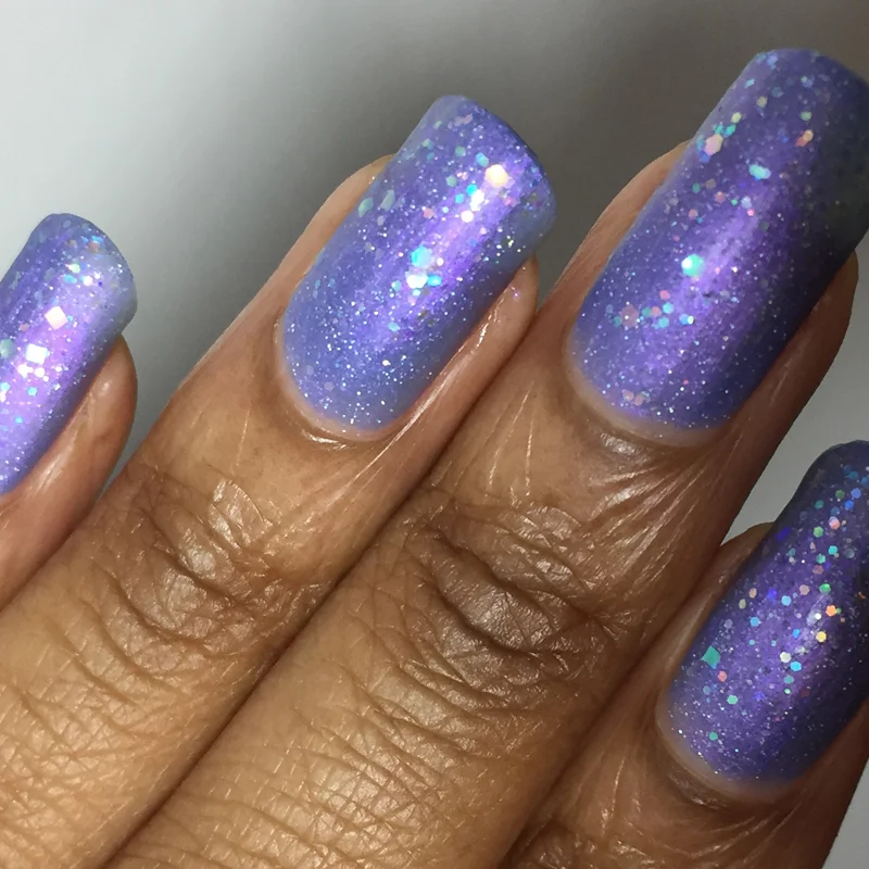 Lilac Chicks is a sweet periwinkle/lilac with pink shimmer and scattered holographic sparks. If fairies wore nail polish made out of unicorn dust, this would be it. Wearing it made me feel like I could snap my fingers and things would magically appear.