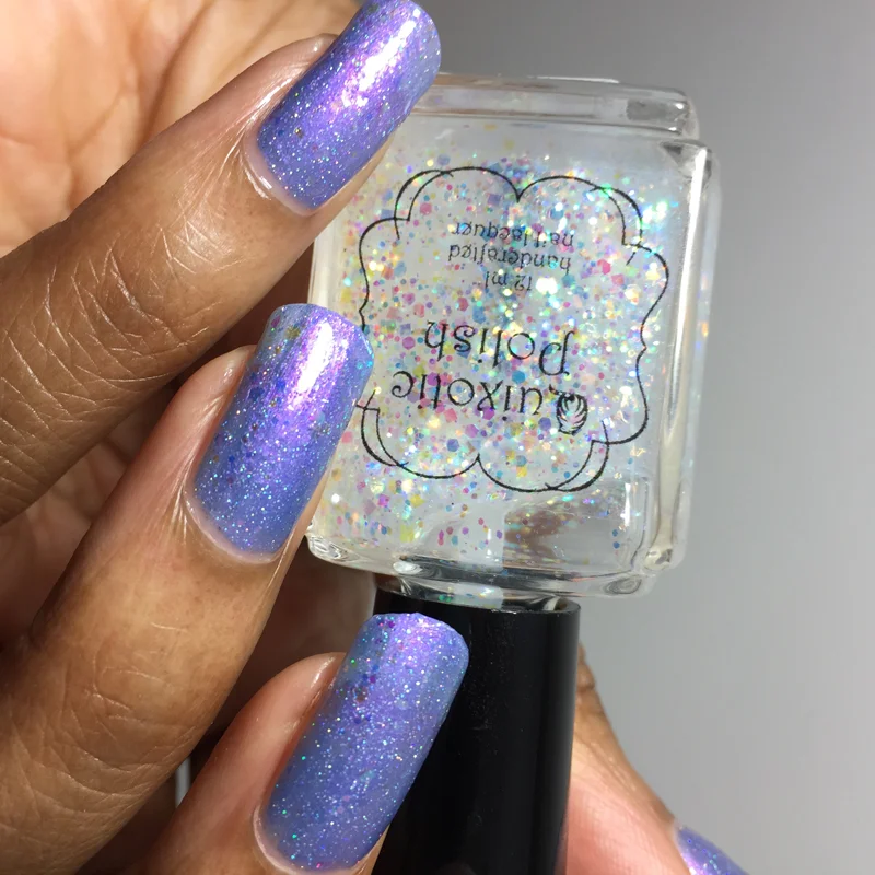 If I may be so bold, I predict that Quixotic Polish will become a popular indie brand. It has a luxe, modern feel to it that's both stylish and playful. I love the consistency of the formula. The polish applies smoothly and levels easily. It's a very strong debut collection that's cohesive and well-edited. My personal favorites are Cher's Favorite Sparkle and Violet's First Dance.