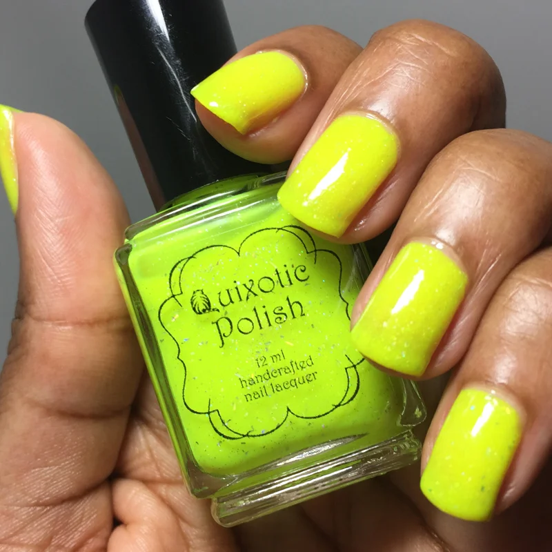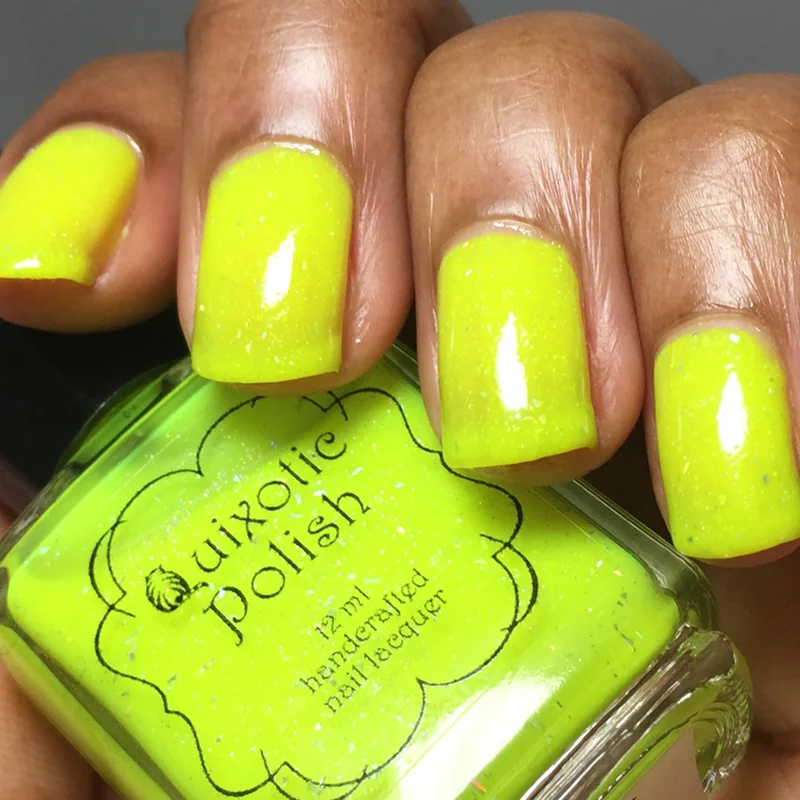 I could barely contain my excitement when I learned Quixotic Polish was releasing a neon collection. You don't understand. I love cartoons and have a background in animation, so I absolutely LOVE bright, bold, vivid colors. I like my neons to be eye-searing bright. So bright that you can see my nails in the dark!